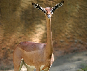 The gerenuk, also known as the giraffe gazelle, is a long-necked antelope found in the Horn of Africa